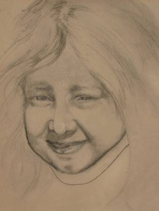 Davina at Six 45.7cm x 50cm/18in x 20in Graphite Heightened