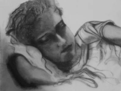 Davina Resting 56 x 91.5 cm/22in x 36in Black Charcoal on