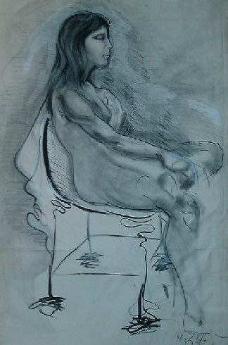 Model in Chair 91cm x 114.3cm/36in x 45in Charcoal/Gouache