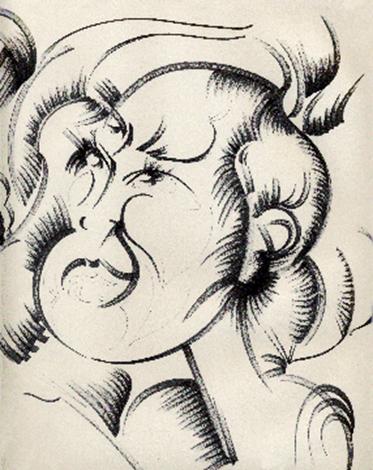 Oni Noh Mask 84cm x 84 cm/33in x 33in Black Conte Crayon on Paper 1986 |
